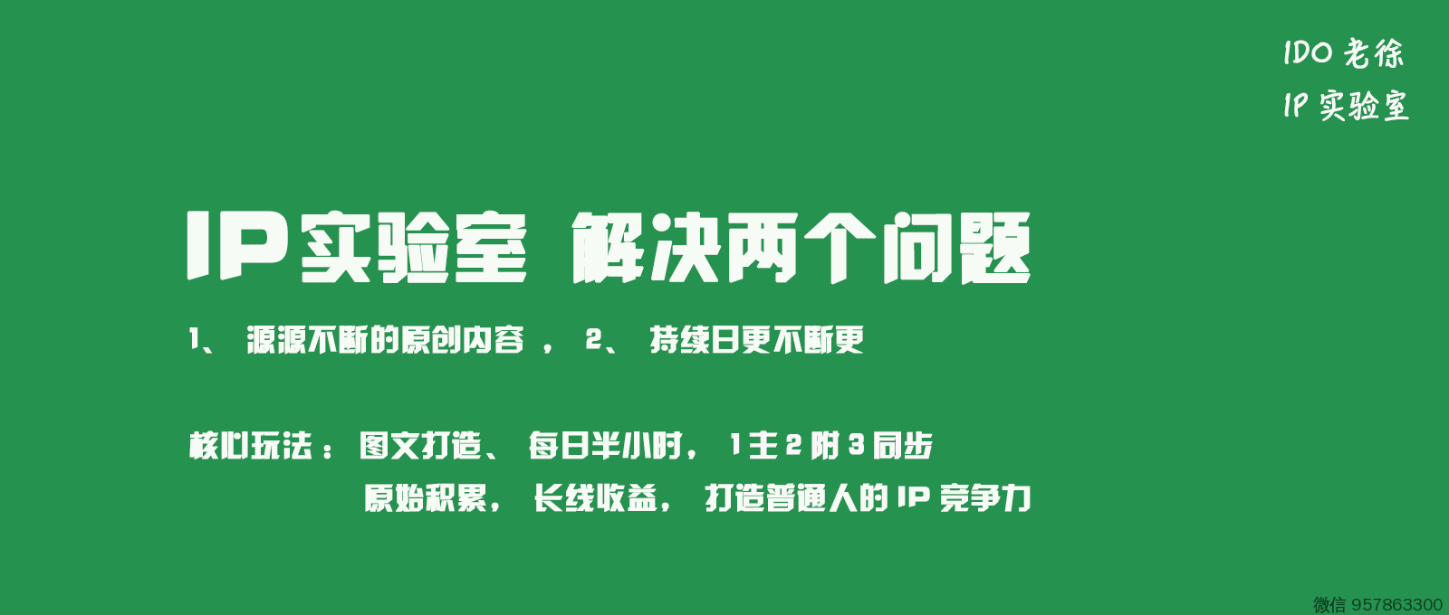 IP实验室 ,核心解决两个问题:1、源源不断的原创内容,2、日更10年不断更