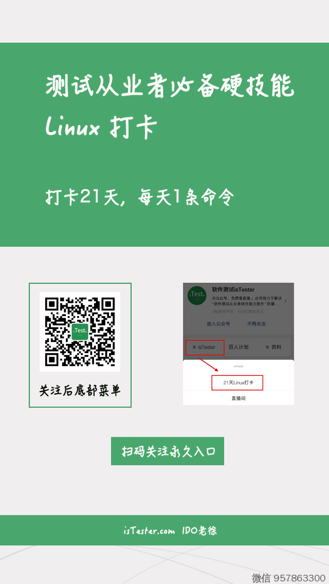 2. 趁着这段时间,跟一群Tester,与老徐一起,每天学习一条Linux命令;