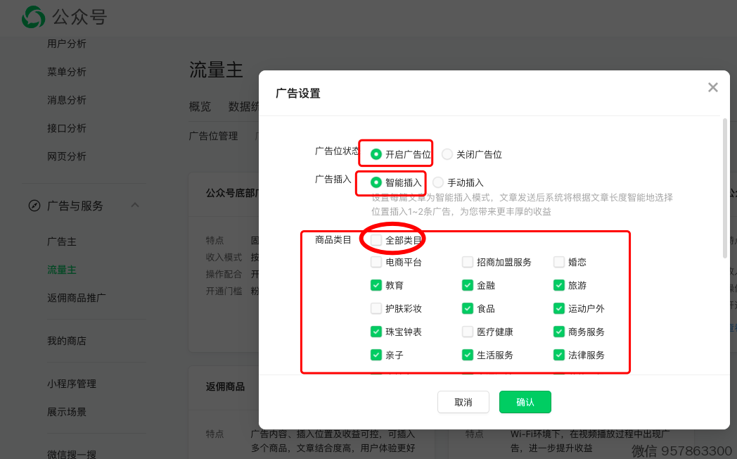 当你关注量500以后,就可以开通 「流量主」了