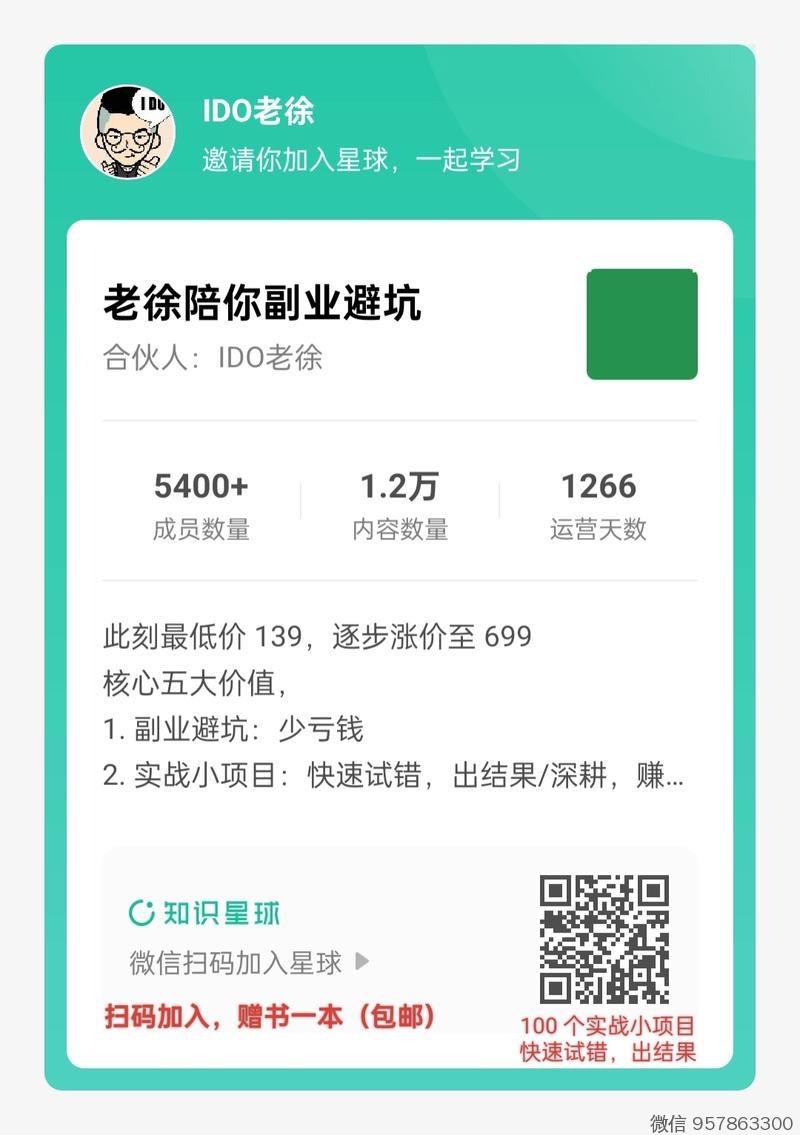 《老徐陪你副业避坑》星球加入方式,
